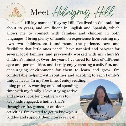 Welcome to Rocky Mountain Sitters, and I hope to help you with your childcare needs soon!